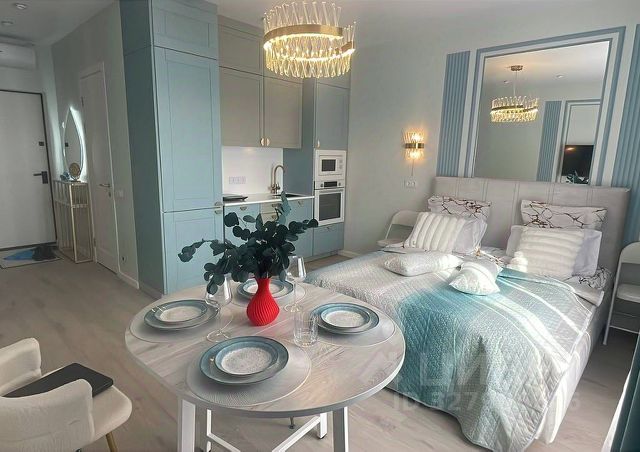 Квартира площадью 27.7 кв.м выполнена с дизайнерским ремонтом высокого класса. Вас встретит светлая кухня-гостиная площадью 5.4 кв.м, полностью оборудованная всей необходимой техникой и мебелью, и уютная спальная зона. Панорамные окна на пятом этаже открывают виды на улицу и благоустроенный двор, наполняя пространство светом. В квартире есть все для жизни: кондиционер, стиральная машина, телевизор, холодильник и полноценная меблировка. Отдельного внимания заслуживает санузел с ванной, что является редкостью для современных планировок подобного формата. Важным преимуществом является возможность проживания с домашними питомцами.