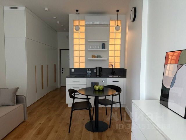 В ЖК Headliner предлагается квартира - студия с ремонтом в современном стиле. Планировка: зона кухни, спальня, ванная комната. Высота потолков составляет 3.1м. Из окон квартиры открывается вид на Москва-Сити. ЖК Headliner - первый в России комплекс жилых небоскребов. На участке 6 га строится 10 высотных монолитных зданий, каждое с неповторимым архитектурным обликом, индивидуальной фактурой и расцветкой фасадов. Внешние стены выложены кирпичом, блоками или керамическим камнем. Многофункциональный квартал жилых небоскрёбов расположен в непосредственной близости от Москва-Сити и даёт максимально удобные условия для личного отдыха в шаговой доступности от бизнес-инфраструктуры. Внутреннее пространство дворов комплекса отделено от транспортных потоков, поэтому жилая зона безопасна и максимально удобна. Для удобства автовладельцев имеется вместительный паркинг. На первых этажах домов работают магазины, кафе и рестораны, банки, офисы и сервисные службы комплекса. Внутри квартала находятся детские сады, творческие студии, медицинские центры, спортивные клубы. В непосредственной близости расположены лучшие школы района.