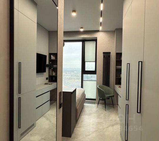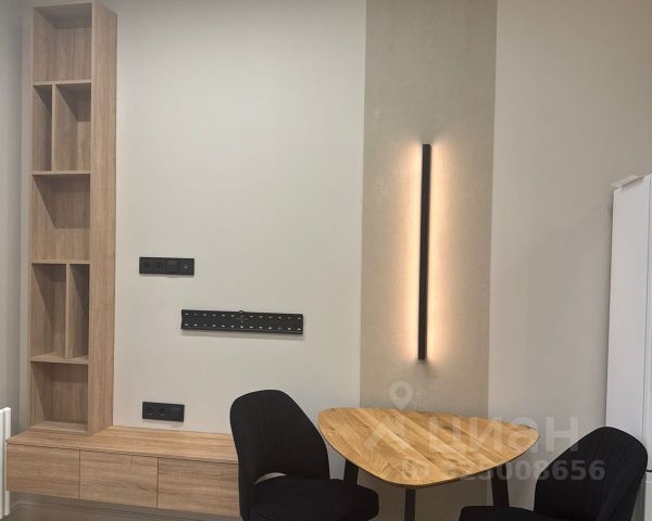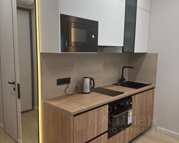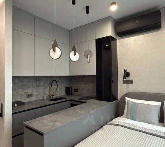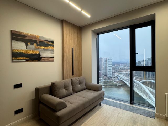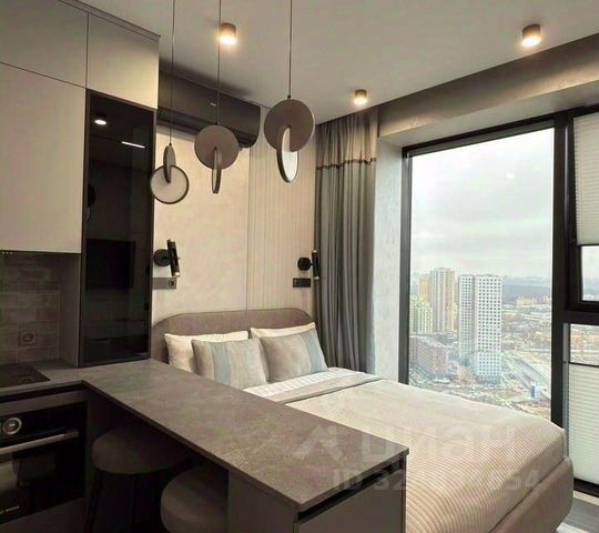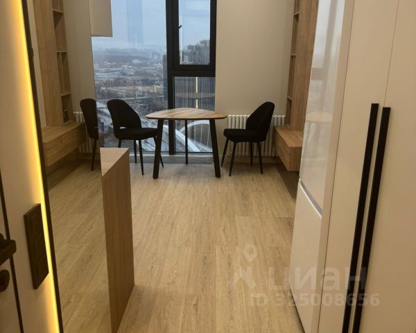 Новая студия с балконом и видом на Москву-реку и двор-парк — только завершили отделку и меблировку. Её обустраивали под одного-двоих человек, получилось красиво и практично. Есть подробное видео, смотрите, пожалуйста. За глянцевыми белыми фасадами справа от входа скрыта прихожая высокий шкаф под одежду с удобной нишей под обувь и скамьёй, чтобы удобнее было переобуваться при входе; далее — объемный кухонный гарнитур под потолок с антресолями из нержавеющей стали, видим эффект зеркал. Стена напротив отделана под потолок натуральным шпоном. За естественным рисунком дерева скрыта дверь в санузел, далее — секция с кухонной мойкой и навесным шкафом для посуды — столешница с плитой напротив. Вытяжка и микроволновая печь размещены над зоной приготовления еды в шкафах сверху. Снизу под столешницей удобные выкатные шкафы. Чайник и прочие нужные хозяйственные мелочи тоже есть. Обратите внимание на закругленные углы мебельных фасадов — над эргономикой пространства работал профессиональный дизайнер, меблировкой также занималась опытная команда. В квартире разместили большую двуспальную кровать с удобными ящиками для хранения, небольшой стильный диван и стол. Жилая зона развернута в сторону окна — балкон имеет стеклянное ограждение, света много, вид чудесный: двор-парк, река, вдалеке — новый арочный мост. Поставили для вас уличную мебель — пока еще идёт теплый сезон, можно коротать вечера на балконе с видом на закат. При ремонте делали акцент на природные фактуры и материалы полы — инженерная доска, рисунок французская елочка, потолки — гипсокартон. Единство стиля прослеживается и в санузле: стекло и камень — душевая с тропическим душем, современная раковина; дерево в оформлении фасадов шкафа: в нем —стиральная машина с сушкой и удобные полки для полотенец. Зеркала визуально раздвигают стены, глянцевая плитка цвета спелой вишни и эффектная подсветка — все сделано качественно, стильно, со вкусом. Полы с подогревом, гигиенический душ, яркость освещения регулируется. Техника: кондиционер, стиральная машина, варочная панель, микроволновая печь, чайник. Нет и не планируется: посудомоечная машина, духовка, телевизор. Жилой комплекс бизнес-класса на первой береговой линии Москвы-реки со своей закрытой территорией, охраной; ритейл уже работают, на выходе из подъезда — большое семейное кафе, строится городская пешеходная набережная до центра Москвы. С домашними питомцами не рассматриваем. По просмотру — звоните.