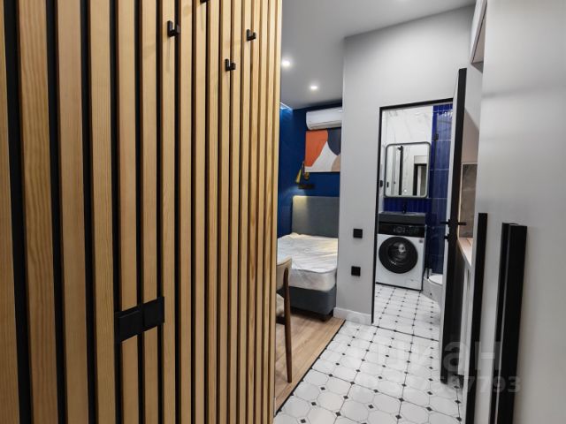 - Совмещённый санузел. Есть стиральная машина с сушкой, электрический водонагреватель (на случай профилактического отключения воды), электрический полотенцесушитель.