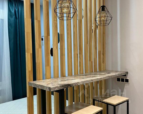 В студии выполнен дизайнерский ремонт в нейтральных светлых оттенках. Дизайн студии продуман до мелочей: зоны для хранения, отдыха, кухня, с/у с большой современной душевой кабиной! Кухня с системой хранения, рабочей зоной для готовки, варочной панелью, вытяжкой, раковиной. Удобная зона столовой с барной стойкой, которая может использоваться как рабочая, розетки в этой зоне оснащены usb-портами. В зоне кухни установлен новый кондиционер, холодильник, микроволновая печь с покрытием из био-керамики. Зона прихожей оборудована удобной вешалкой и местом для обувь. Санузел совмещенный оснащен душевой, новой стиральной машиной и эргономичный раковиной, а также проточным водонагревателем. Стены и пол из широкоформатного керамогранита. Большая двуспальная кровать c матрацем, новый СМАРТ телевизор, интернет.
