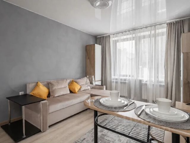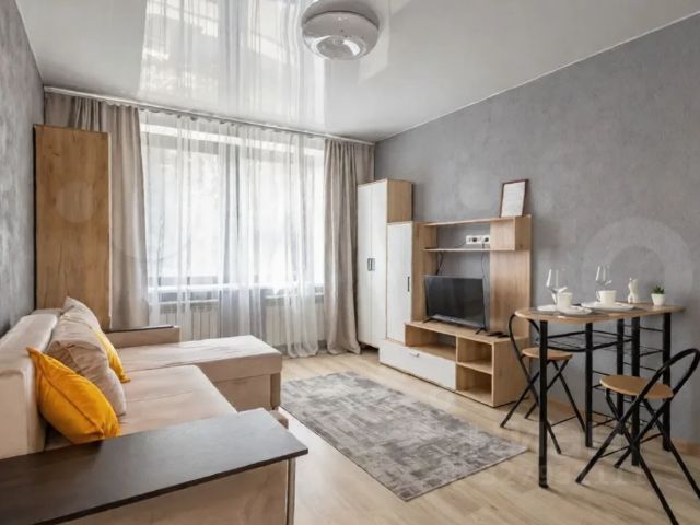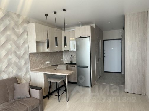 Сдается новая стильная уютная квартира-студия общей площадью 25,6 кв м. Располагается на 12 этаже. Окна выходят на улицу. Техника в квартире: стиральная машина, индукционная варочная панель с 2 конфорками, полноразмерный холодильник, духовой шкаф с функцией микроволновки, вытяжка, кондиционер, проточный водонагреватель, электрочайник, беспроводной пылесос, утюг. Квартира обставлена удобной мебелью: полноразмерная кровать шириной 160 см с подъемным механизмом, анатомический матрас Askona (высота 17 см), прикроватная тумбочка, стеллаж, комод, большой шкаф для одежды, обеденный стол с 2 стульями, пуфик, зеркало. Также есть стремянка и гладильная доска. Санузел с ванной (170 см) площадью 3,2 кв м. Кроме того имеется набор посуды: кастрюли, сковорода, чашки, тарелки, салатники, столовые приборы. Квартира сдается впервые после ремонта. Договор найма заключается на 11 месяцев Коммунальные платежи: электроэнергия, ХВС, ГВС, отопление, интернет оплачиваются арендатором.