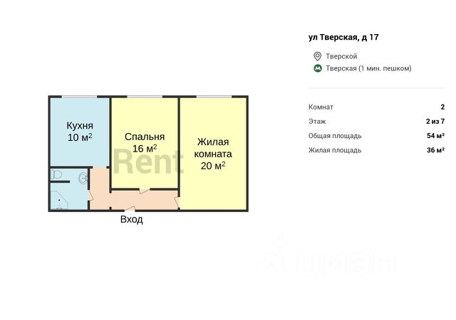 • ✓ В базе Циан 2 квартир со свободной планировкой рядом с метро Маяковская.