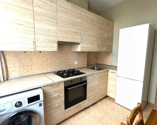 Кухня: встроенный двухметровый холодильник, посудомоечная машина, духовой шкаф+СВЧ, варочная поверхность (две комфорки), фильтр для воды, комплект новой посуды и столовых приборов,пол-керамогранит.