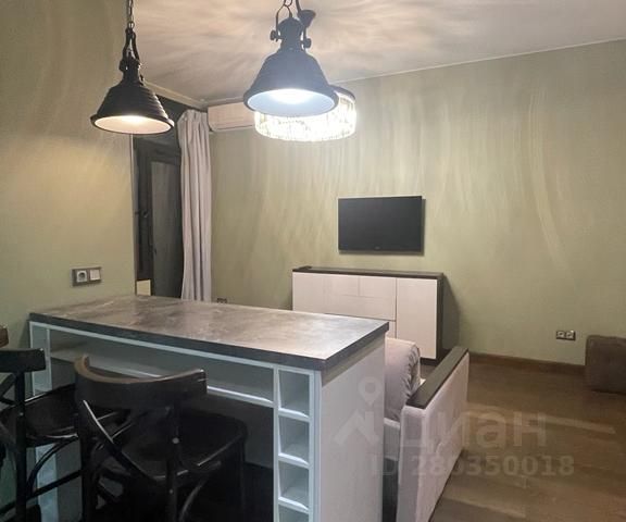 Гостиная: Угловой диван из микрофибры (в идеальном состоянии), журнальный стол-трансформер (Италия), барная стойка из натурального мрамора (3 см), 2 барных стула, 49-дюймовый изогнутый ЖК-телевизор Samsung, кондиционер Panasonic.