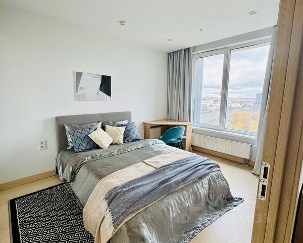 На высоком 15 этаже монолитного 18ти этажного дома, в конце коридора рядом с зоной лифтов, с высокими потолками , широкоформатными окнами и открытым видом на прогулочные зоны Грин Парка!