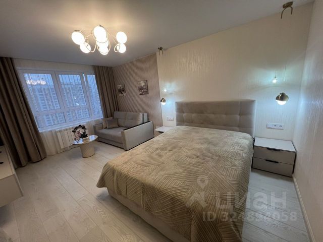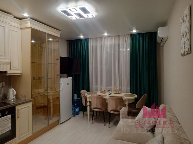 В квартире выполнен хороший ремонт, просторная прихожая, кухня укомплектована новым встроенным кухонным гарнитуром, обеденной зоной, вся бытовая техника в наличии, выход на лоджию. В комнате установлен новый двуспальный раскладной диван, кондиционер, комод под ТВ, компьютерный стол, встроенный просторный зеркальный шкаф купе. Санузел совмещенный, комфортная душевая кабина, качественная сантехника.