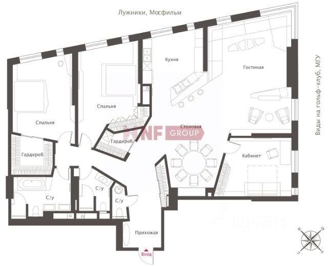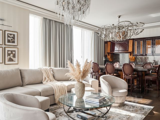 ID 47071: ЭКСКЛЮЗИВ компании Intermark Удобная, практичная, функционально спланированная 4-комнатная квартира в ЖК "Дом на Мосфильмовской" на ул. Мосфильмовская, д. 8. Расположение на 26 этаже предлагает панорамные виды на Москву (от юго-запада до северо-востока), естественное освещение, чистый воздух и тишину. Ремонт квартиры выполнен в 2020 г. профессиональным дизайнерским бюро. Акцент на сохранении пространства с лаконичными формами и функциональностью. В отделке использованы экологичные и современные материалы: массивная доска, краска Argile, портьеры Zoffany. Технически квартира оборудована кондиционированием Daikin, приточно-вытяжной вентиляцией, имеются створки для проветривания, система подогрева пола в ванных. Встроенная мебель на заказ из Бельгии, Дании, Италии, кухня Leicht, бытовая техника Liebherr, Bosch, Neff. Общая площадь квартиры 120 кв. м.: левое крыло две детские спальни, ванная комната (ванна), хозблок (стиральная и сушильная машины), правое крыло спальная, душевая комната, гостиная объединена с кухней. В каждой комнате глубокие шкафы. Закрытая охраняемая территория с КПП по картам. Во дворе детская и спортивная площадка . В доме: салон красоты "Code de Beaute", кофейня "Даблби", химчистка, автомойка в гараже. В соседнем здании итальянский ресторан "Белладжио" и напротив дома гольф-клуб "Village Kitchen". Инфраструктура: кинотеатр "Синема Парк", киностудия "Мосфильм" с экскурсиями, автобусная остановка до м. "Киевская" за 9 мин. Транспортная развязка: выезд на Сколковское, Минское, Рублевское и Новорижское шоссе. Близко к Кампусу "Летово Джуниор" (13 мин), Новой школе (8 мин), к школе "Снегири" (6 мин). Долгосрочная аренда (от года), Рассматриваются семьи с 1-2 детьми. Без домашних питомцев. М/м арендуется отдельно. БОНУС КОЛЛЕГАМ