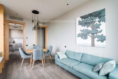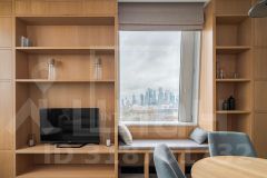 В квартире: С мебелью, Парковка, Посудомоечная машина, Стиральная машина, Сушильная машина, Душевая кабина, Теплые полы, Кондиционер, Видеонаблюдение, Охрана, Пожарный выход, Интернет, Видовая квартира, Можно с детьми, Европланировка, Ванна, Интерьер в современном стиле, Лифт, Ремонт - дизайнерский, Кухонная мебель, Окна на улицу, Окна во двор