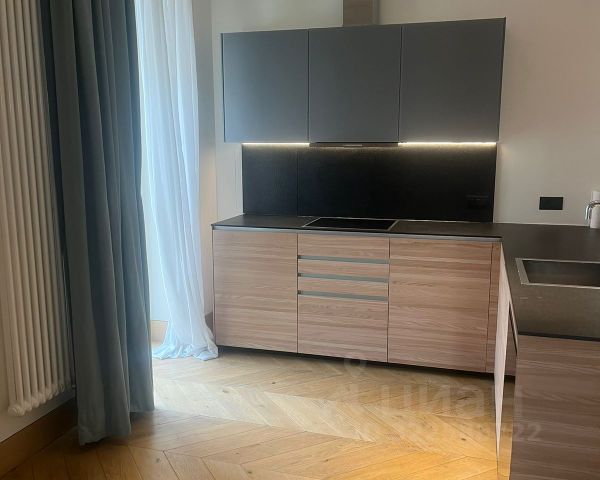 Раскрываете двери — и оказываетесь на кухне. Белые филёнчатые фасады и сияние зелёного камня готовят к гастрономическим экспериментам. Здесь запекают лосось со спаржей и готовят шоколадный фондан — и подают в уютной столовой.
