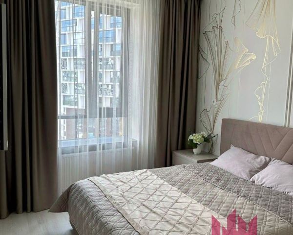 Квартира расположена на 16 этаже, красивый вид из окон во двор. Отдельная Спальная комната с широкой кроватью ( 1,6*2 м.) с подъемным механизмом и шкафом. Отдельная кухня-гостиная. Выполнен качественный ремонт, установлена современная бытовая техника премиальных марок. Встроенный холодильник, посудомоечная машина, телевизор, Wi-Fi, комфортный диван ( раскладывается). Просторная прихожая с большим шкафом.
