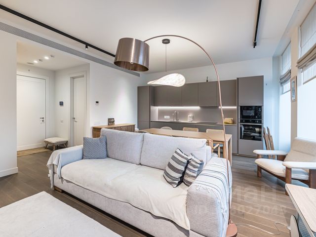 В квартире: С мебелью, М/место в подземном паркинге, Посудомоечная машина, Стиральная машина, Сушильная машина, Бойлер, Душевая кабина, Теплые полы, Спутниковое/кабельное телевидение, Кондиционер, Тренажерный зал, Видеонаблюдение, Охрана, Интернет, Балкон, Видовая квартира, Можно с детьми, Европланировка, Ванна, Интерьер в современном стиле, Консьерж, Кондиционер, Гардеробная комната, Лифт, Кухонная мебель, Окна на улицу, Окна во двор