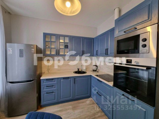 * Кухня: стильные матовые фасады, современная техника (микроволновка, плита, духовка, тостер, холодильник).