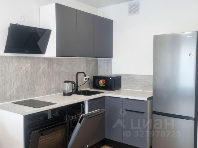 * Кухня: стильные матовые фасады, современная техника (микроволновка, плита, духовка, тостер, холодильник).