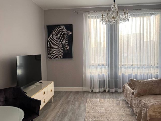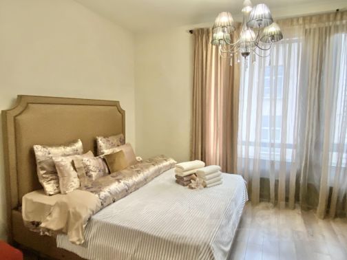 Квартира с двумя изолированными комнатами и высотой потолков 3,3 метра обескураживает своим простором и светом. 3 окна выходят в тихий двор, обеспечивая отличную инсоляцию внутреннего убранства. Ремонт выполнен по индивидуальному дизайн-проекту из качественных материалов: полы в жилых помещениях выполнены из элитного бельгийского дубового паркета, межкомнатные двери покрыты натуральным шпоном, установлены качественные и тихие окна, в каждой комнате имеется отдельная премиальная сплит-система, подогрев полов в коридоре, ванной и кухне с сенсорным управлением и возможностью программирования режимов работы, премиальная бытовая техника, включая посудомоечную и стиральную машину с сушкой, систему очистки воды (и подогрева воды на период летнего профилактического отключения), высокоскоростной интернет, телевизоры с диагоналями 55 дюймов. В коридоре и комнатах установлены огромные встроенные шкафы, создающие функциональные зоны хранения. В спальне установлена огромная двуспальная кровать с ортопедическим матрасом. В гостиной имеется комфортное рабочее место с большим письменным столом.