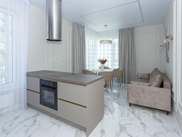 Сдаётся 3-комнатная квартира площадью 84,7 кв.м. С дизайнерским ремонтом на 14 этаже в 26-этажном доме на срок от 6 месяцев. Квартира сдаётся впервые. Из техники есть: - Телевизор, WI-Fi роутер (интернет мегафон) - Духовой шкаф - Микроволновка - Холодильник - Посудомоечная машина - Фильтр для очистки воды - Стиральная машина - Сушильная машина - Кондиционер в 3-х комнатах - Пылесос Дом - монолитный, окна выходят во двор и на улицу. В подъезде 3 лифта - 1 грузовой и 2 пассажирских. Есть подземная парковка. 3 изолированные комнаты: -спальня; -детская комната, подойдёт как для маленьких детей, так и для подростков с выходом на балкон. -гостиная с панорамным видом и гардеробной комнатой/прачечной далее -кухня со всей встроенной техникой -с/у с душевой, с/у с ванной -отдельная комната гардероб/прачечная (коммунальные услуги по счетчика оплачивает арендатор) Имеется закрытый двор, подземный паркинг. В комплексе ЖК продуктовые магазины, рестораны и кафе, аптека и спортзалы, детский бассейн, развивающие детские школы, салоны красоты. Рядом 2 школы и 3 детских сада.