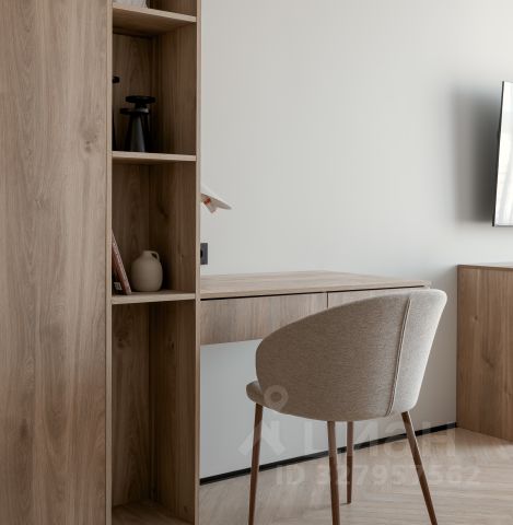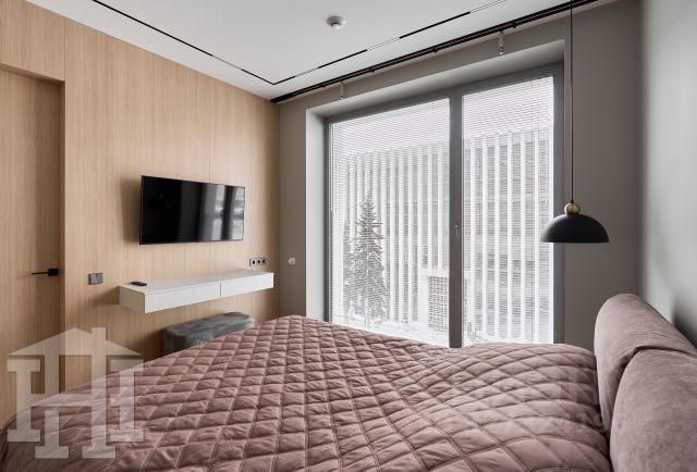 Мебель: шкаф-купе на заказ Техника: в шкафу встроено оборудование управления умным домом, акустическая система (ресивер Onkyo, усилитель для сабвуфера Monitor Audio, проигрыватель Blu-Ray Pioneer).
