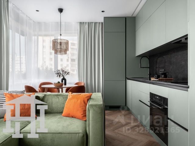 двухкомнатная квартира 36 м² на Кронштадтском бульваре, д. 8с1, подъезд 2, 6 этаж из 33. Монолитный дом, потолки 2,68, окна на улицу. Квартира сделана аккуратно и по уму: мебель на заказ, чтобы не спорить с геометрией и не терять место под хранение. Планировка простая и удобная. Кухня с полноценной встроенной техникой и барной стойкой, рядом гостиная с большим диваном и ТВ, чтобы вечером было чем заняться кроме просмотра своих рабочих чатов. Отдельная спальня и нормальный санузел с ванной, стиральная машина стоит там же. По оснащению тут все закрыто: холодильник, посудомойка, духовой шкаф, микроволновка, вытяжка, кондиционер. И есть Яндекс Станция с Алисой для голосового управления светом в спальне, можно командовать светом, не вставая с кровати, хоть с дивана. Парковка во дворе, пока стихийная, домофон и доступ есть. Домашние животные обсуждаются индивидуально