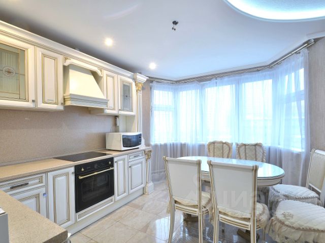 Кухня: итальянский гарнитур из массива в классическом стиле, столешница из чёрного камня, встроенный холодильник с ледогенератором Liebherr, варочная панель и духовка Bosch , посудомоечная машина Electrolux. Стоит новая очистная система воды. Эффектная люстра из чёрного стёкла. Шторы на заказ.