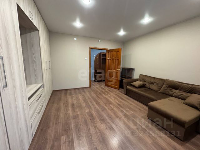 Большая спальня - кровать квин-сайз, с кожаным изголовьем. Широкий и длинный шкаф- купе, комод, тумба.
