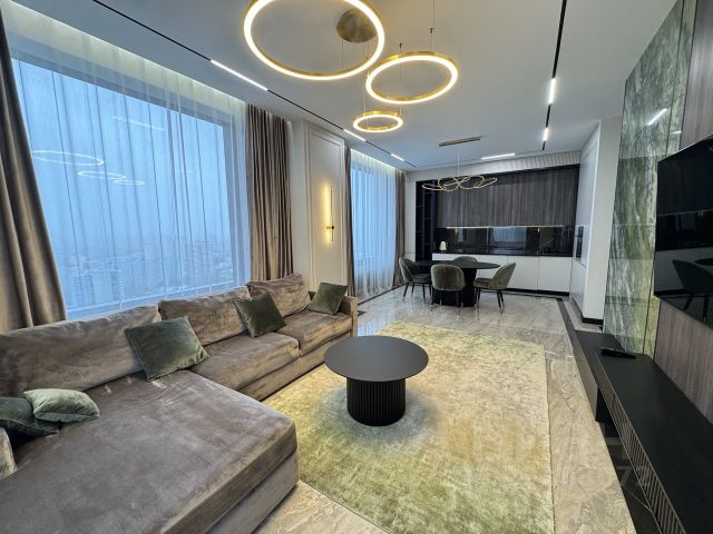 Квартира с панорамным видом МГУ, Крокус Сити, Поклонную гору. Квартира полностью меблирована, укомплектована всей необходимой бытовой техникой: двухкамерным холодильником (с полным ноу фрост), варочной панелью SCOOTT CERAM, духовкой. Мебель массив. Система хранения (длиной 6м) выполнена в классическом стиле. Стол 70см*1м10см (раскладывается 1м80см). Диван из натуральной кожи на 2 спальных места, телевизор с диагональю 42 дюйма. Санузел со стиральной машиной, безободковым унитазом, удобным туалетным столиком. Глубокая ванна с душем. Установлена защита от протечек Нептун (зона кухни и санузла). Кондиционер.