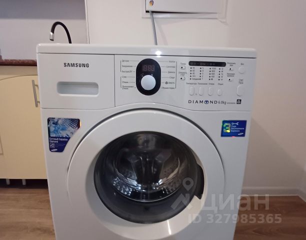 В ванной: стиральная машина полного цикла (много эффективных режимов стирки). Над раковиной вместительный навесной шкаф с зеркалом.