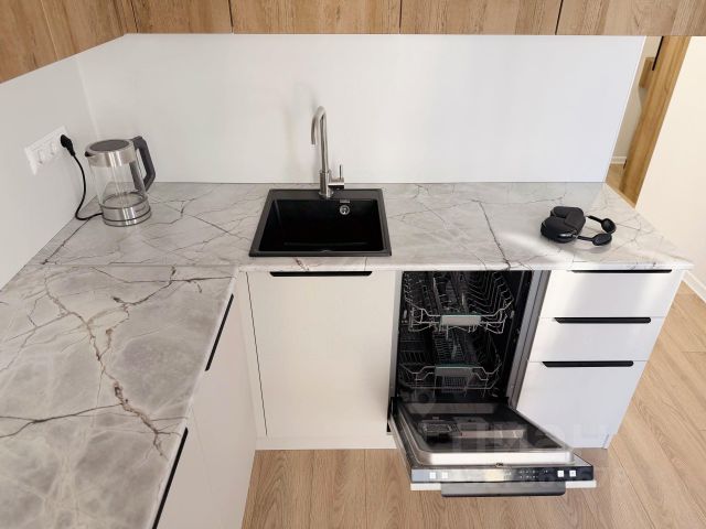В квартире есть также пылесос, посуда, столовые приборы, кастрюли, сковородки, одеяла, подушки Аскона и все, что нужно для комфортной жизни.