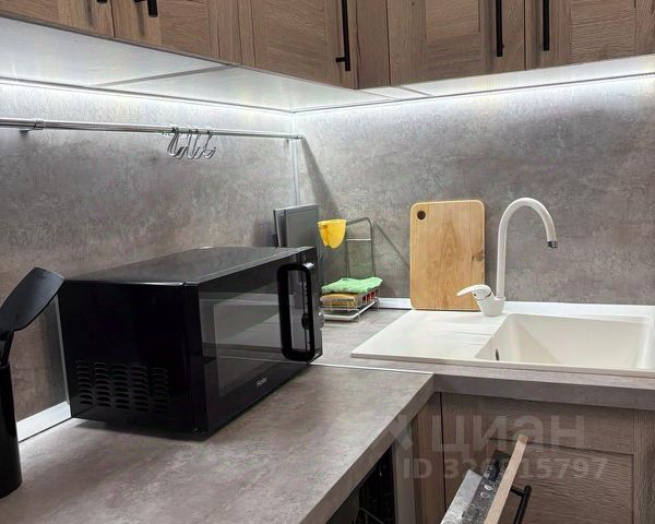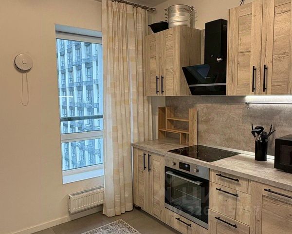 В кухне-гостиной: встроенная кухня с качественной фурнитурой, электрический духовой шкаф с функцией СВЧ, посудомоечная машина, индукционная варочная панель, вытяжка, встроенный холодильник, система фильтрации питьевой воды, обеденный гарнитур. В зоне отдыха: диван, смарт ТВ (50 дюймов), стенка с удобными шкафами и ящиками.