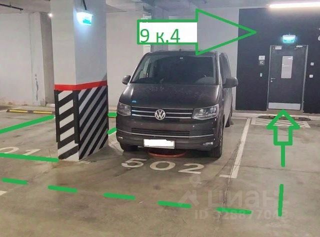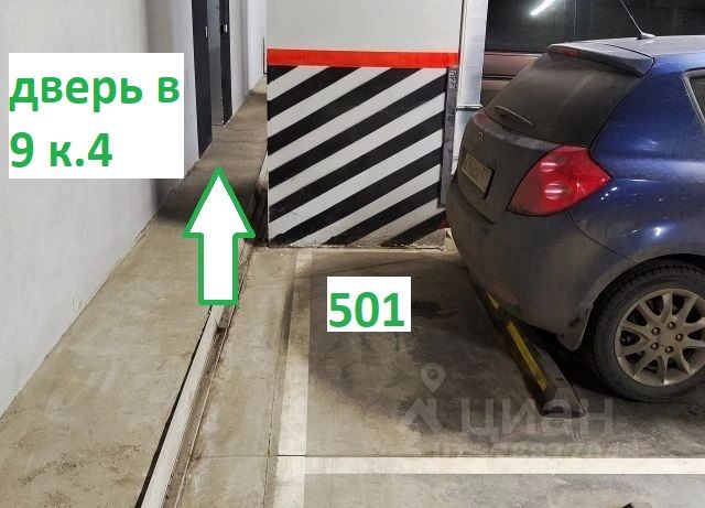 Большое комфортное машиноместо 501. Ближайший корпус для выхода - 9 к.4 1) широкий заезд - удобно парковаться и разворачиваться 2) хорошее расположение - недалеко нести сумки из машины в дом 3) дополнительное место до стены - удобно разгружать багажник 4) у колонны - возможность широко открыть дверь