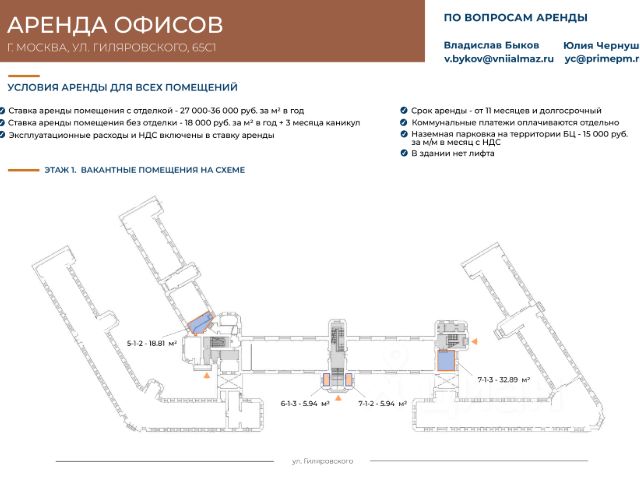 АРЕНДА ОФИСОВ ОТ СОБСТВЕННИКА от 10 кв.м (порядка 38 лотов) в уникальном историческом 5-ти этажном здании в развитом районе Москвы с удобным расположением (5 минут от метро) - на ул. Гиляровского, 65с1.