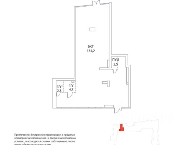 Коммуникации: отдельная вытяжка, кондиционирование, одна мокрая точка, от которой можно сделать разводку, канализация центральная, система пожаротушения и дымоудаления.