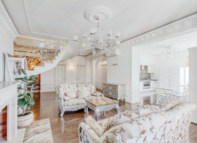 Лот 539278. Бонус коллегам 50%! Предлагается шикарная многокомнатная квартира в комплексе премиум-класса "Триумф Палас". Выполнен ремонт в стиле дворцовой классики, интерьер оформлен в светлых тонах. Планировка: 1-й этаж: кухня-гостиная с обеденной зоной, изолированная спальня, совмещенный санузел с душевой кабиной, постирочная; 2-й этаж: гостиная, три изолированные спальни, большая гардеробная, два совмещенных санузла с ванной и душевой кабиной. Квартира укомплектована классической мебелью и современной техникой. Из окон открывается вид на город. В отделке использовано натуральное дерево, белая лепнина, декоративный кирпич. Высота потолков 3 метра. Круглосуточная охрана, видеонаблюдение, контроль доступа. Есть возможность аренды машиноместа в паркинге. В ЖК имеется фитнес премиум класса, кафе-булочная, мини-маркет, клиника широкого профиля, салоны красоты, химчистка, ремонт обуви, ателье, банк, автомойка, шиномонтаж, детская площадка с выходом в Чапаевский парк. В квартире: Полностью меблированная, Посудомоечная машина, Стиральная машина, Спутниковое/кабельное телевидение, Охрана, Интернет, Можно с детьми, Можно с животными, Лифт, Мебель в комнатах, Телевизор, Мебель на кухне, WE SPEAK ENGLISH. PLEASE FEEL FREE TO CONTACT US. Номер объекта: #1/539278/13367 Снять многокомнатную квартиру в переулке Чапаевский в Москве на длительный срок.