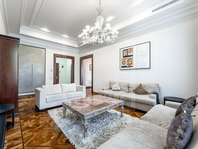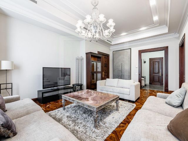 ID 13209. Просторная двухуровневая квартира в самом центре Москвы в доходном доме 1917 года постройки в неоклассическом стиле, в западно-европейском варианте. Высокие потолки 3,70 м. Планировка: большая гостиная, просторная кухня, пять спален, пять полных ванных комнат, сауна, гостевая ванная, постирочная комната, балкон. Парковка в огороженном дворе. Квартира предлагается без мебели. Кухня оборудована всем необходимым, установлены кондиционеры, стиральная и посудомоечная машины. В окрестностях находятся все самые модные рестораны и бары Москвы, множество музеев и других мест, где можно провести свой досуг. В квартире: Консьерж, Без мебели, Балкон, Можно с детьми, Можно с животными, Изолированная кухня, Ванна, Интерьер в классическом стиле, Видовая квартира, Парковка Посудомоечная машина, Стиральная машина, Сушильная машина, Бойлер, Джакузи, Душевая кабина, Сауна, Спутниковое/кабельное телевидение. Кондиционер, Охрана, Лифт, Ремонт - Евроремонт Многокомнатная квартира рядом с метро Цветной бульвар.