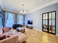 ID 32129. Стильная 6 -комнатная квартира в доходном доме Коровина, расположена в тихом переулке между Пречистенкой и Арбатом. Современный ремонт из натуральных материалов. Полная комплектация мебелью и техникой. Установлен кондиционер, теплые полы. Функциональная планировка: общая площадь 220 кв. м, гостиная, кухня, столовая, 3 спальни, кабинет, 2 ванные комнаты и гостевой санузел, 2 гардеробные комнаты, балкон. Окна выходят на 2 стороны, высота потолков 3.60 м. Огороженная территория, консьерж, домофон. Парковка в закрытом дворе. В ближайшем доступе: Храм Христа Спасителя, Кремль, кафе, магазины, рестораны, бары, салоны красоты, музеи, театры и галереи. Можно с детьми. Животные обсуждаются Please feel free to contact Intermark Real Estate to get detailed information or to set up a viewing! 24/7 help desk service with English-speaking operators В квартире: С мебелью, Парковка, Готовы меблировать, Посудомоечная машина, Стиральная машина, Сушильная машина, Бойлер, Душевая кабина, Теплые полы, Спутниковое/кабельное телевидение, Кондиционер, Видеонаблюдение, Сигнализация, Пожарный выход, Гараж, Интернет, Балкон, Можно с детьми, Изолированная кухня, Ванна, Интерьер в современном стиле, Консьерж, Кондиционер, Гардеробная комната, Лифт, Кухонная мебель, Окна на улицу, Окна во двор Многокомнатная квартира в переулке Староконюшенный в Москве.