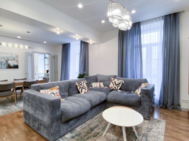 Впервые предлагается в аренду исключительная двухэтажная квартира с двумя просторными террасами (25м2 и 120м2) и захватывающими панорамными видами на Москву-реку. Именно вода и открытые горизонты стали вдохновением для создания авторского интерьера, выдержанного в эстетике межконтинентального морского лайнера. Этот интерьер — не просто дизайн, а целая концепция: пространство, в котором ощущается свобода, движение и свет. Проект был опубликован в авторитетном журнале Salon Interior, что подчеркивает его высокий уровень и художественную ценность. В отделке использованы дорогие породы дерева, создающие теплую, благородную атмосферу. Центральным элементом гостиной стал эффектный второй свет с видом на небо, а также купол второго уровня, выполненный из витражного стекла Тиффани — настоящее произведение искусства. Планировка: 1 этаж: -просторная прихожая с гардеробной -гостиная со вторым светом с выходом на терассу -кухня-столовая -3 спальни с выходами на балкон -ванная комната (ванна и душевая кабина) -гостевой санузел 2 этаж: -спортивная зона -кабинет с выходом на террасу -спальня с гардеробной -санузел -сауна 2 м/м в подземном паркинге включены в арендную стоимость. Квартира идеально подойдет для ценителей нестандартной архитектуры, дизайнерских решений и приватности в сочетании с панорамными видами. Многокомнатной квартиры с детьми в переулке 7-й Ростовский в Москве.
