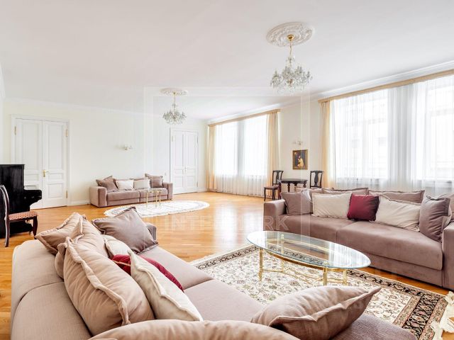 ID 32683. Эксклюзивная по дизайну и планировке 6-ти комнатная квартира, расположенная в престижном малоквартирном доме на Кузнейком мосту! Квартира в спокойном классическом стиле с дизайнерским ремонтом только из качественных натуральных материалов. Полная комплектация мебелью, бытовой техникой и сантехникой престижных марок. Установлен кондиционер, бойлер, стиральная и сушильная машины, теплые полы, проведен высокоскоростной интернет. Очень функциональная и удобная планировка: общая площадь 218 кв. м, гостиная, столовая, кухня, 4 спальни, 3 ванные комнаты и гостевой туалет, постирочная, гардеробная, много встроенных шкафов. Окна выходят на 2 стороны, высота потолков больше 3,8 м. Дом с профессиональной охраной и огороженной территорией, доступ на подземную парковку на лифте от квартиры. Одно машино-место в подземном гараже дома включено в стоимость. В наличии охраняемая гостевая парковка. В ближайшем доступе множество кафе, ресторанов, музеев и различных памятников архитектуры. Можно с детьми. Строго без животных. Please feel free to contact Intermark Real Estate to get detailed information or to set up a viewing! 24/7 help desk service with English-speaking operators В квартире: С мебелью, М/место в подземном паркинге, Посудомоечная машина, Стиральная машина, Сушильная машина, Бойлер, Джакузи, Душевая кабина, Теплые полы, Спутниковое/кабельное телевидение, Кондиционер, Видеонаблюдение, Сигнализация, Охрана, Интернет, Можно с детьми, Изолированная кухня, Ванна, Консьерж, Кондиционер, Гардеробная комната, Лифт, Кухонная мебель, Окна на улицу, Окна во двор