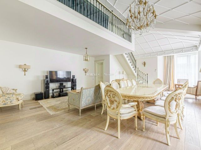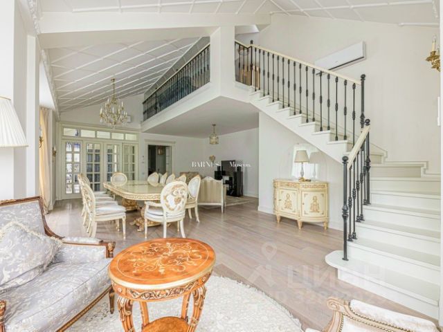 Планировка: 1 этаж кухня-гостиная, спальня со своим санузлом и гардеробной комнатой, домашний кинотеатр, гардеробная, гостевой с/у, постирочная; 2 этаж: гостиная, зона отдыха с домашним кинотеатром, 2 спальни со своими санузлами, гардеробная, гостевой санузел, кладовая. Антресоль: 3 спальни, гардеробная, 2 ванные комнаты. Высота потолков - 3,60 м. В квартире выполнена новая дизайнерская отделка с применением натуральных материалов(дерево, природный камень, мрамор).