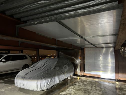 В аренду машиноместо (на фото) справа от машины в чехле. Охрана 24/7, коммунальные платежи входят в стоимость.