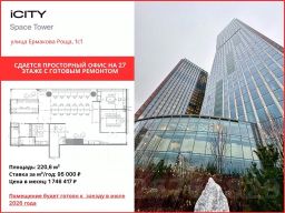 Сдается офис площадью 220 м² с видом на ТТК, расположенный на 16 этаже в башне "Space Tower" деловых небоскребов класса "A" iCity.