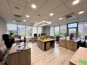 Планировка смешанная, кабинетная : просторный оpen-space, кабинеты, переговорные комнаты, кухня с мокрой точк...