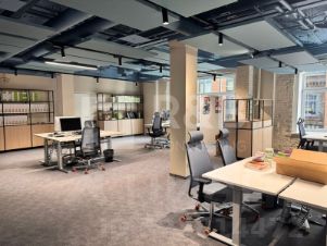 Смешанная планировка, просторные опен спейс, большая переговорная, кабинеты, зона рецепшен, сан.узлы.