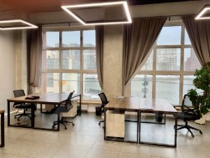 Сдается просторный дизайнерский офис с мебелью на 25 сотрудников. Помещение с высотой потолков — 4 метра и панорамными окнами с функцией проветривания.