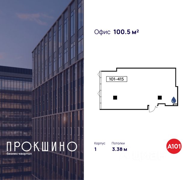Сдаётся офисное помещение площадью 103.5 кв. м. в Бизнес-квартал "Прокшино". Чистовая отделка. Витринное остекление с видом на улицу. Высота потолков 3.38 м. Выделенная электрическая мощность — 10 кВт. Общий вход с улицы. Стоимость аренды помещения — 362 250 руб...