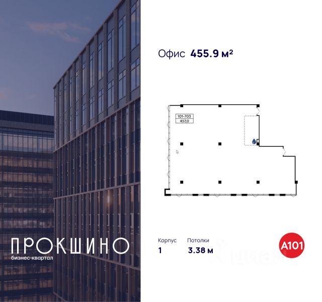 Сдаётся офисный этаж площадью 2 102 кв. м. в новом бизнес-квартале Прокшино" класса А, введённом в эксплуатацию в 2024 году.