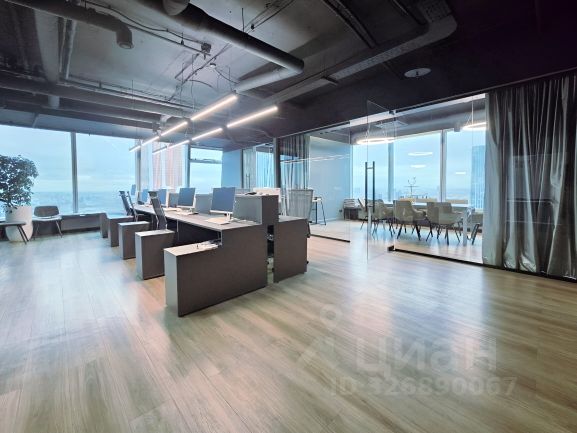 Решение под ключ. Предлагаем в аренду видовой офис площадью 161 кв.м. на 68 этаже. Угловое мебелированное помещение идеально подходит для статусной компании численностью 10-15 сотрудников.