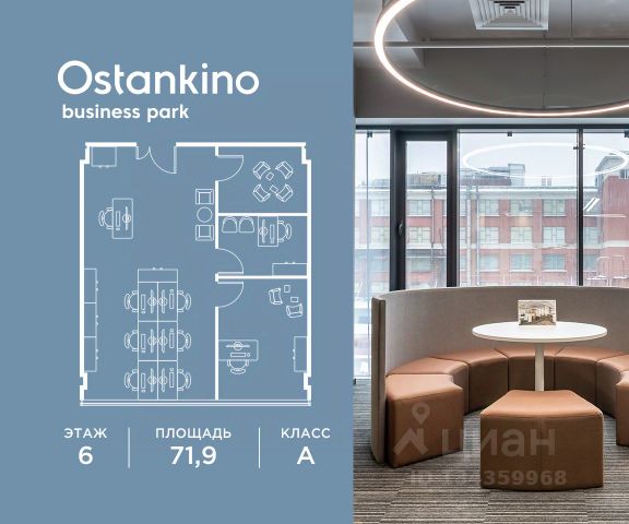 Предлагается в аренду ОФИС общей площадью 71 кв. м в Ostankino business park.