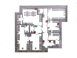 1) Офис 77,7 кв.м на 1-м этаже. Удобная планировка, офис в хорошем состоянии. Хорошая инсоляция благодаря большим окнам и светлым тонам отделки.