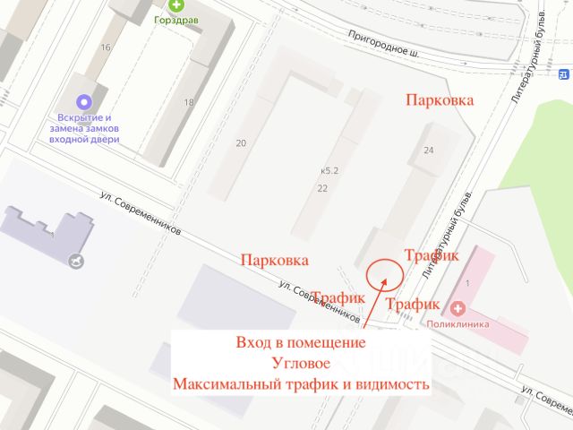 Въезд в район, напротив через дорогу крупная районная поликлиника. Сдаётся в аренду угловое нежилое помещение (максимальная видимость для привлечения клиентов и покупателей) 81,21 кв. м. в густонаселенном ЖК Пригород лесное.
