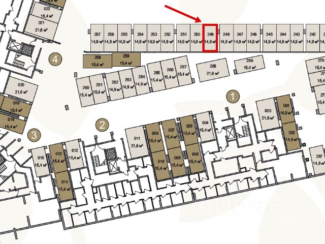 Парковочное место 249 расположено между первым и третьим подъездами дома 10. Преимущества: - Тепло, сухо, тихо. - Число 249 крайне благоприятно в сфере отношений и денег. - При желании израсходовать 200 калорий после утреннего круассана можно воспользоваться лестницей вместо лифта.