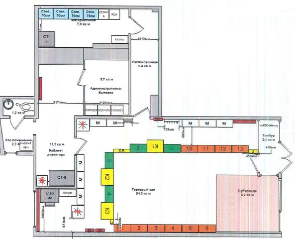 Общая мощность 220 кВТ, активное транспортное движение (третье кольцо) Помещение два этажа: первая линия (1 этаж) с витринами на третье транспортное кольцо с активным трафиком машин с двумя отдельными входами + подвал (-1 этаж) с отдельным входом для погрузочно-разгрузочных работ и доступом из основного помещения. 2 лифтовые шахты для поднятия груза с -1 этажа в зал. 1-й этаж общая торговая площадь 463,3 м2 с ремонтом, отдельный центральный вход расположен с фасада, отдельный второй вход расположен с торца здания. Проведено два отдельных электрокабеля с разрешенной общей мощностью потребления 170кВТ Витрины фасада: площадь: 82 м2(длина 34 м2) -1 этаж помещение для склада (подвал) общая площадь 323,6 м 2 с отдельным входом, предусмотрен вход из торгового помещения, лифт для подачи груза . Отдельный кабель на склад с разрешенной мощностью 50 кВт Горячее + холодное водоснабжение для обоих помещений Отдельно выделенная система отопления для помещений с автоматическим учётом фактически затраченной тепловой энергии